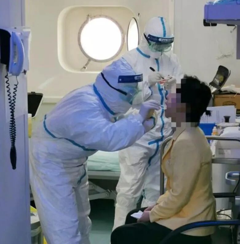 18名工作人员全副武装登船检测,分组对船上的4806人加速排查。