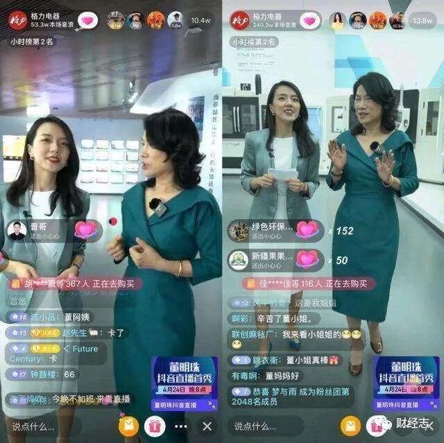 再比如,格力电器董事长兼总裁董明珠在6月1日带上全国3万家线下门店在淘宝、京东、快手、抖音、微信小程序等平台上开启直播,这场声势浩大的全平台直播启动1分59秒,销售额便突破1亿元,开播3小时25分,破10亿元。