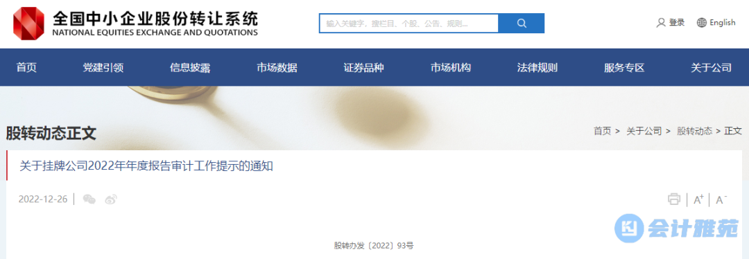 会计雅苑-会计审计资讯平台。 本文来自股转公司,如需转载请注明来源。
