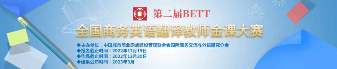 为了推动全国商务英语翻译教育改革,加快高校外语教学发展,为国家培养更多的国际化复合型人才,中国城市商业网点建设管理联合会国际商务交流与外语研究分会(简称“中国城商联外研分会”)联合众多的行业协会、企事业单位共同推出“第二届BETT全国商务英语翻译教师金课大赛”,现将相关事宜通知如下: