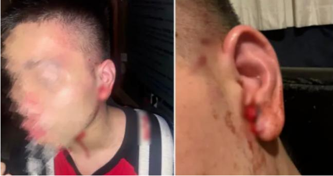 照片显示,受害男生的左耳出血,头部也受了伤。