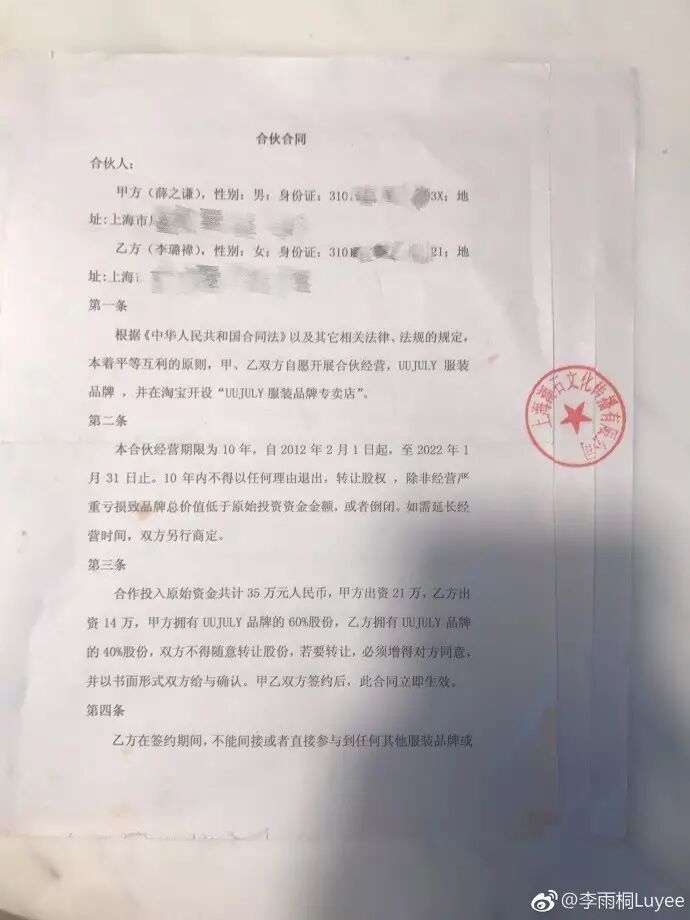 粉丝说不是合伙人,亮出合同。