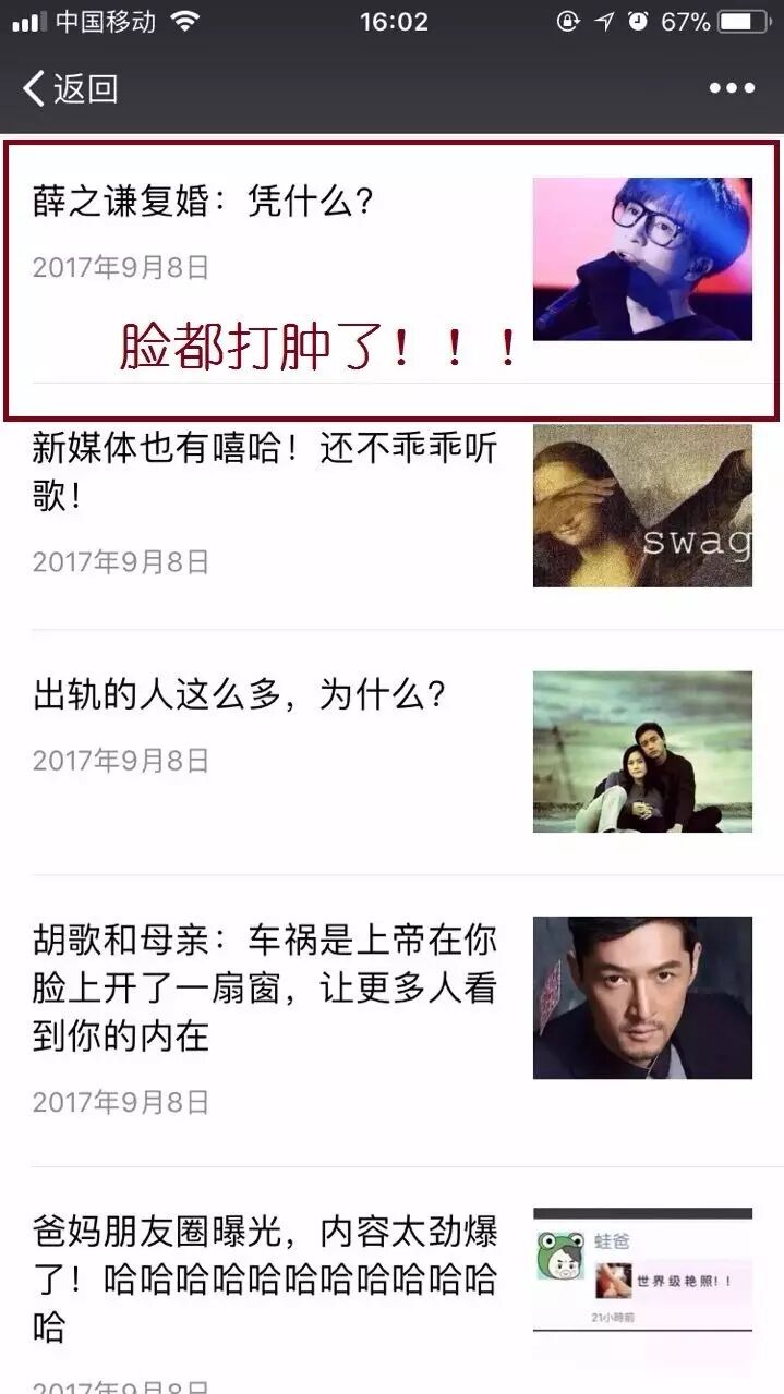 9月8号那天,太宇刚刚转载了一篇薛之谦复婚的暖心文章,然后这一周多的嘴巴子来的太快,有些无力承受。