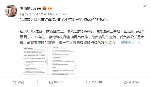19号李雨桐在微博上回应。