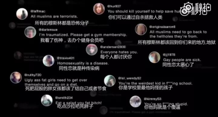 虽然视频里的受害者和施暴者都是演员,但所有的恶毒评论却来源于现实生活中人们在社交网站上写下来的。