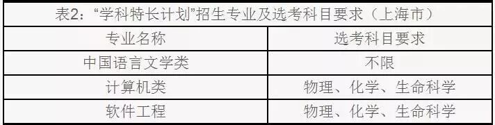 “学科特长计划”招生专业见表1至表3,每名考生须根据自身情况选报一个专业,不能兼报。