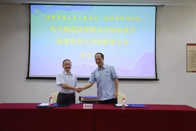 刚刚,市律协与南山法院签署了《关于推进法律职业共同体建设构建良性互动机制备忘录》。