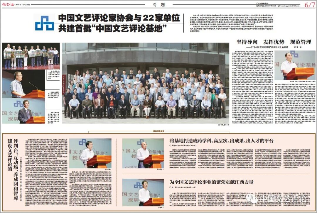 △中国文艺评论家协会与22家单位共建首批“中国文艺评论基地”(《中国艺术报》2015年10月12日第6-7版)