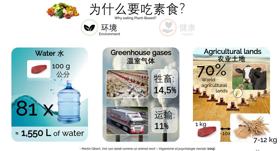 他们也从环境和健康的角度表达了他们的素食理念。在他们的讲述下,现场许多观众才了解到原来生产100g牛肉需要消耗这么多水资源,原来世界上所有交通工具产生的温室气体还没有畜牧业来得多。![]()