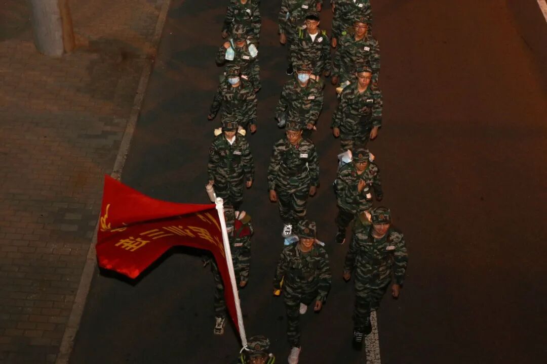 凌晨2:30,拉练路途过半,同学们的体能虽消耗了不少,但精神依然昂扬,军训指挥部下令就地休息片刻。代表一营三连参与尖刀班的经21乔渤然同学表示,在队伍最前列听到校歌与《钢铁洪流进行曲》响起时,内心很激动,“这是段辛苦却难忘的经历,我们能够感受到精神上的洗礼,期待与大家在拉练中共同收获成长”。