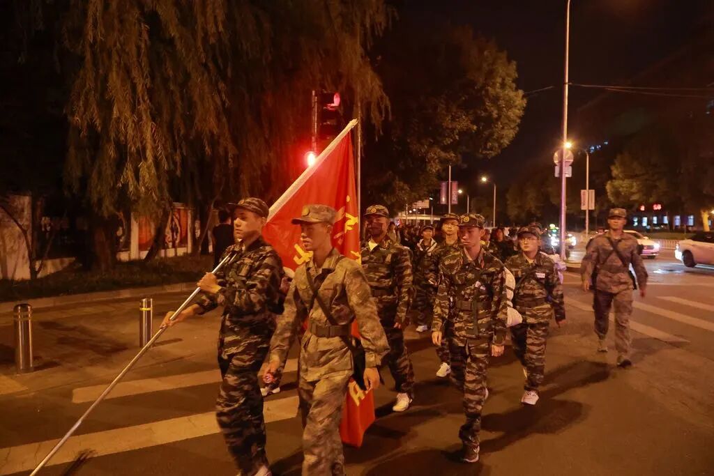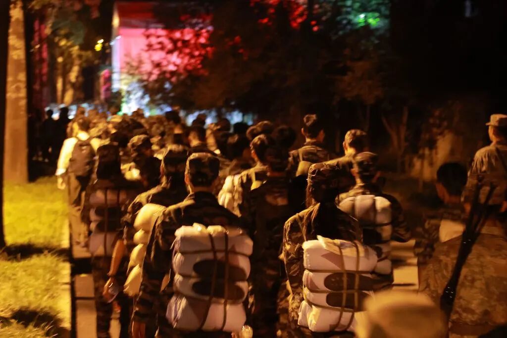 这个夜晚,军训教官与辅导员们陪伴着参训同学一起走过这段征程,为新生们的拉练护航。28日下午,学院党委学生工作组、学生工作事务办公室的老师们和辅导员、同学们一起向教官们表示感谢。