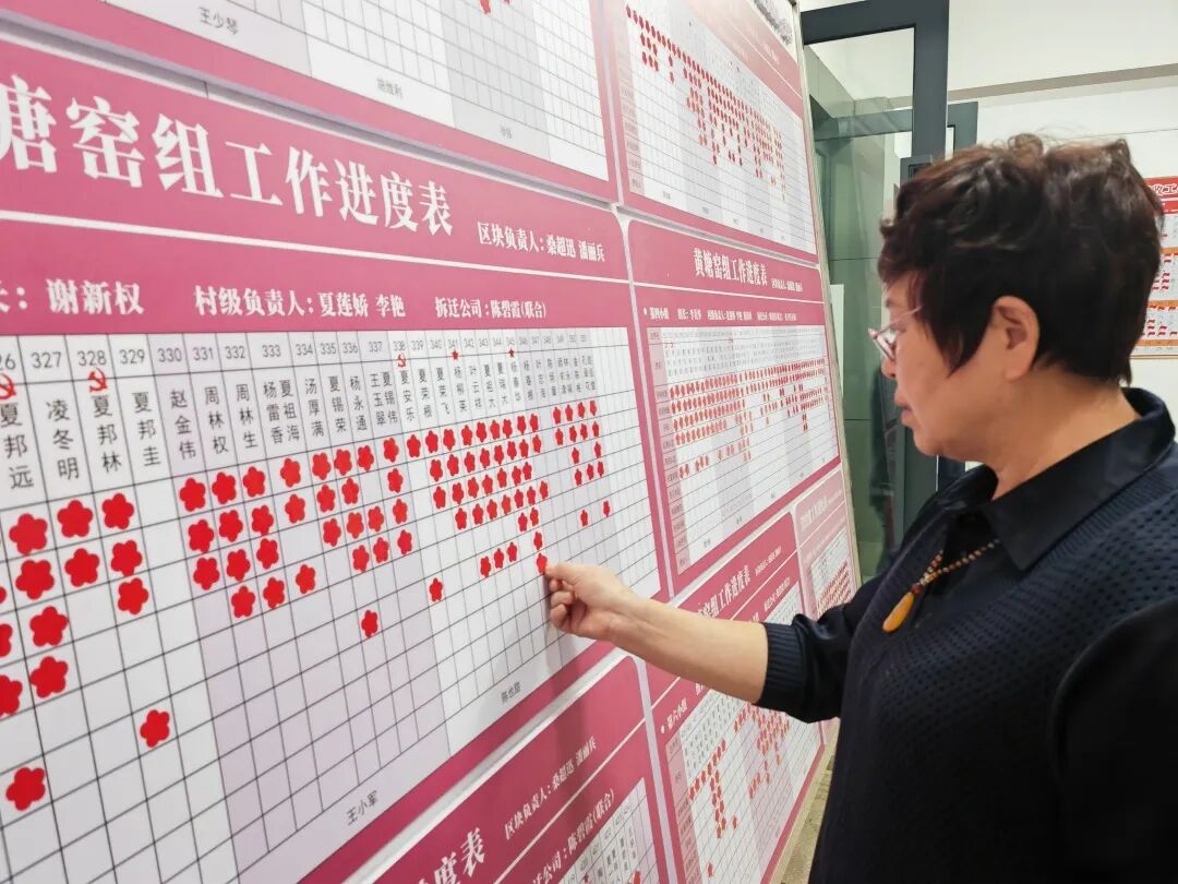 经过慎重思考,被征收户杨女士和她的父亲在协议书上签字,摁下手印。签订协议后,工作人员为黄塘窑组工作进度表上贴上一枚新的“小红花”。