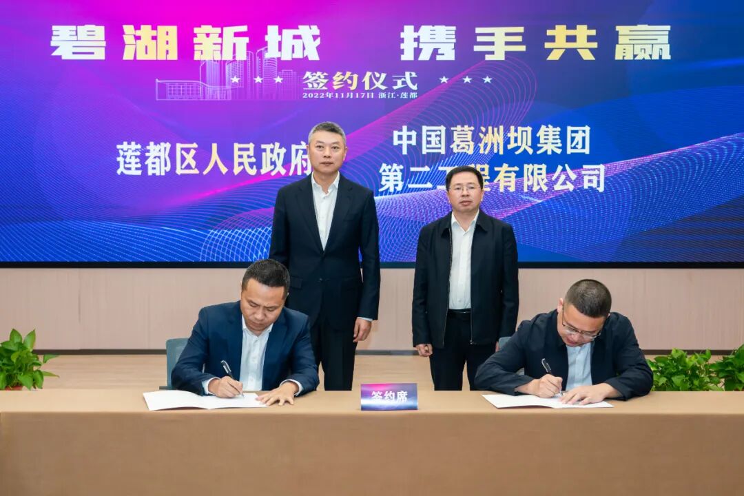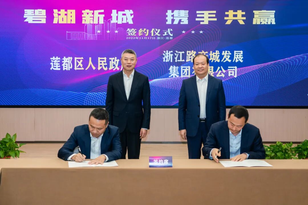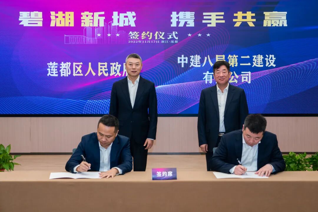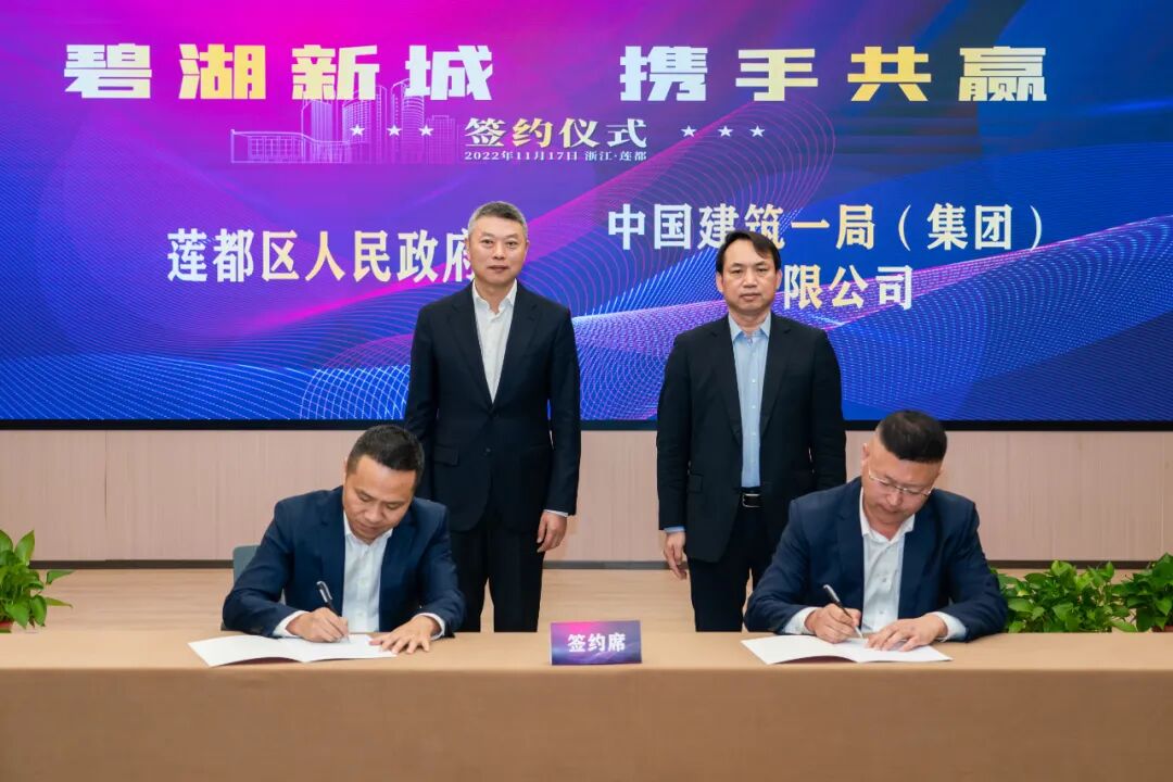 仪式上,莲都区政府与中国葛洲坝集团第二工程有限公司、中国建筑一局(集团)有限公司浙江分公司、中建八局第二建设有限公司上海公司、浙江路产城发展集团有限公司签订战略合作框架协议。