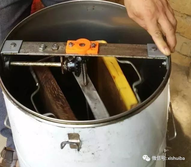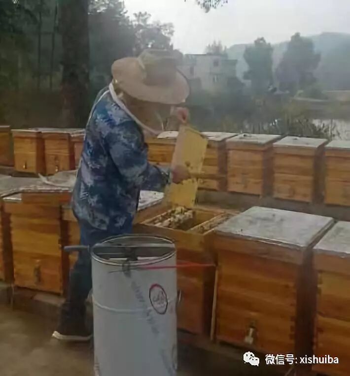 养蜂人最开心的事,就是摇蜜了,摇蜜之前要把蜂蜡切掉,然后再利用摇蜜机采取离心运动将巢胚里面的蜜摇出来。