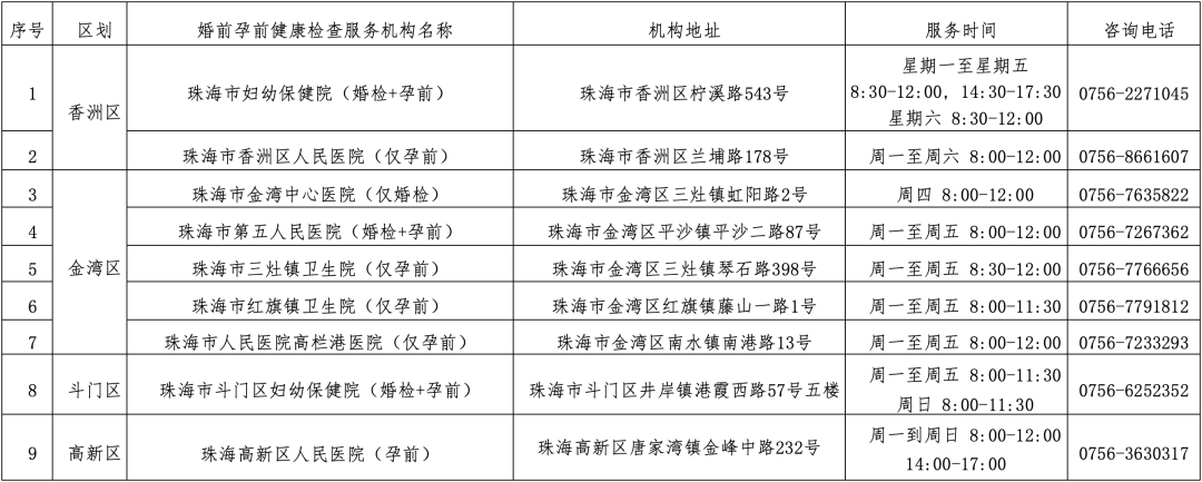 珠海市免费婚前孕前