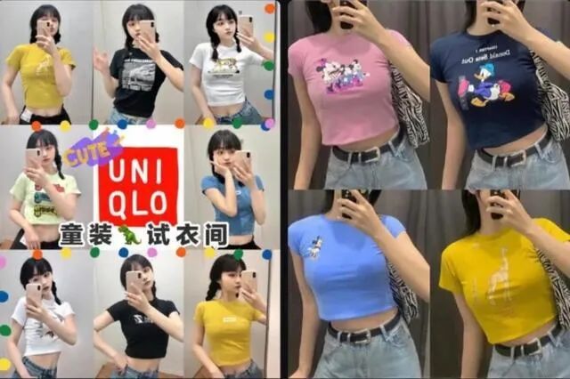 当穿上BM的优越感已经无法满足女孩们后,她们将目光投向了童装。不少成年女孩们为了“炫腹”,纷纷开始晒自己穿上童装的试衣间穿搭照,优衣库童装区因此彻底沦陷。