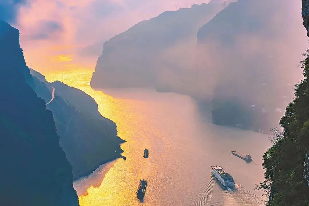 (图为轮船行驶在长江三峡黄金水道上。 马晓红摄 图片来源:《人民日报》2021年4月6日10版)