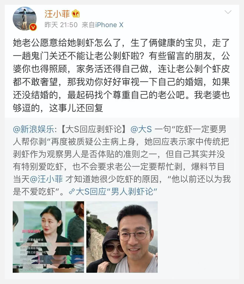 ● 曾经在微博上力挺大S的汪小菲