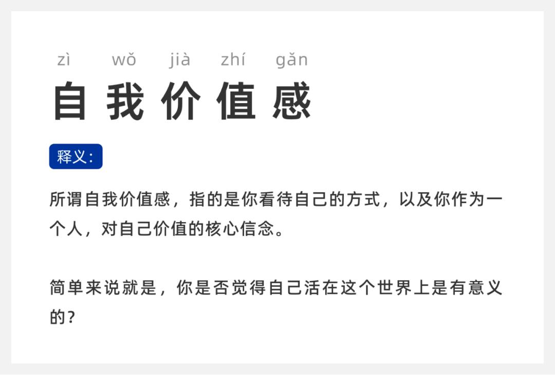 自我价值感低的人,本质上是没有自我的人,他们察觉不到自己存在于世界上的意义。