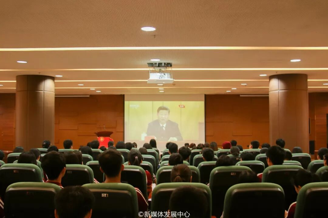 校党委常委、校团委许娜书记,校团委刘苗副书记,校团委常委、经济管理学院经济与金融系团总支书记宋元跃老师,与校团委组织的各校级学生组织干部、各系团学干部、青马班学员、团校学习班学员及团员青年等学生代表在图书馆报告厅集中观看大会直播。
