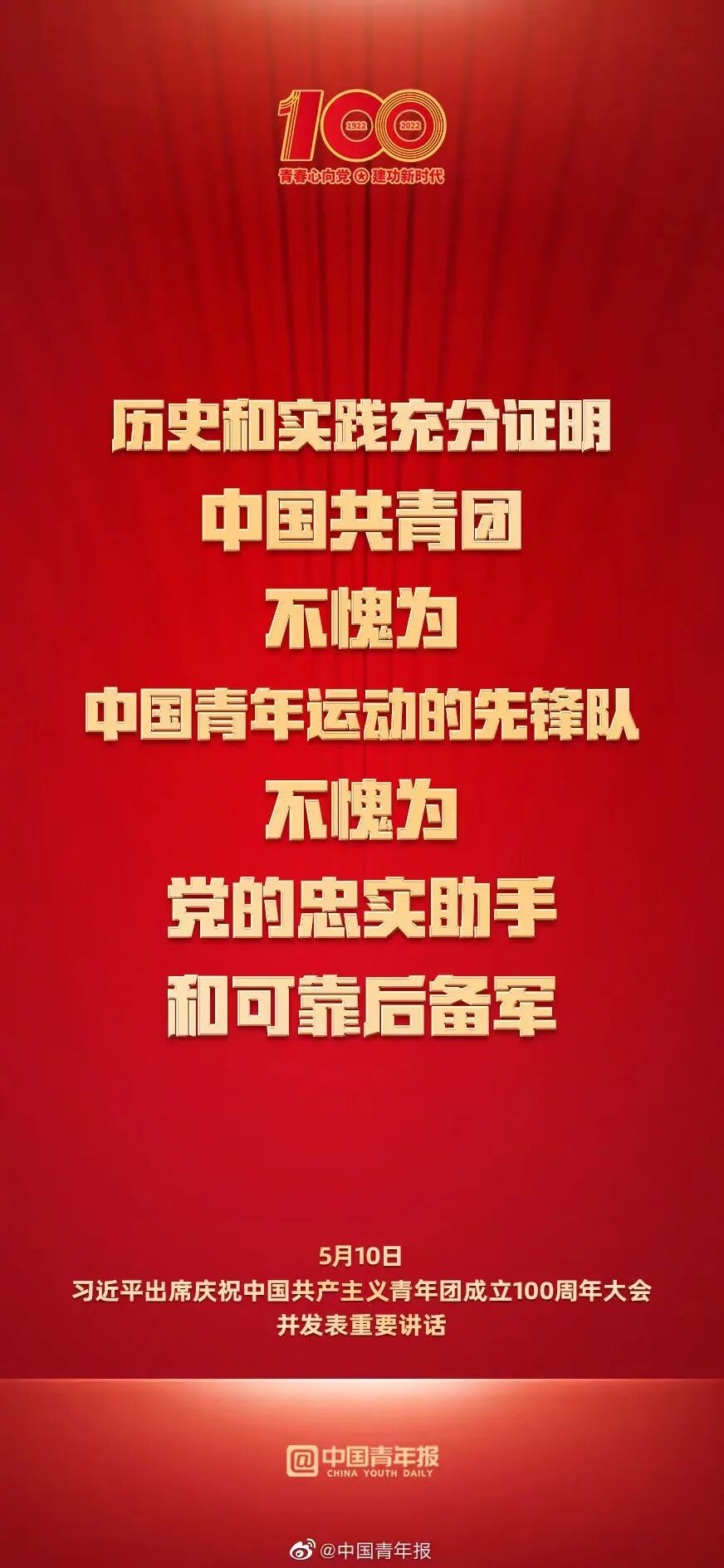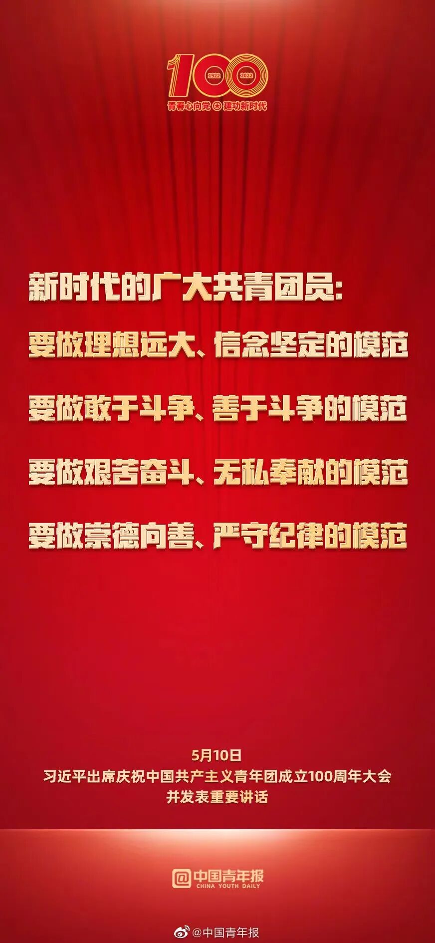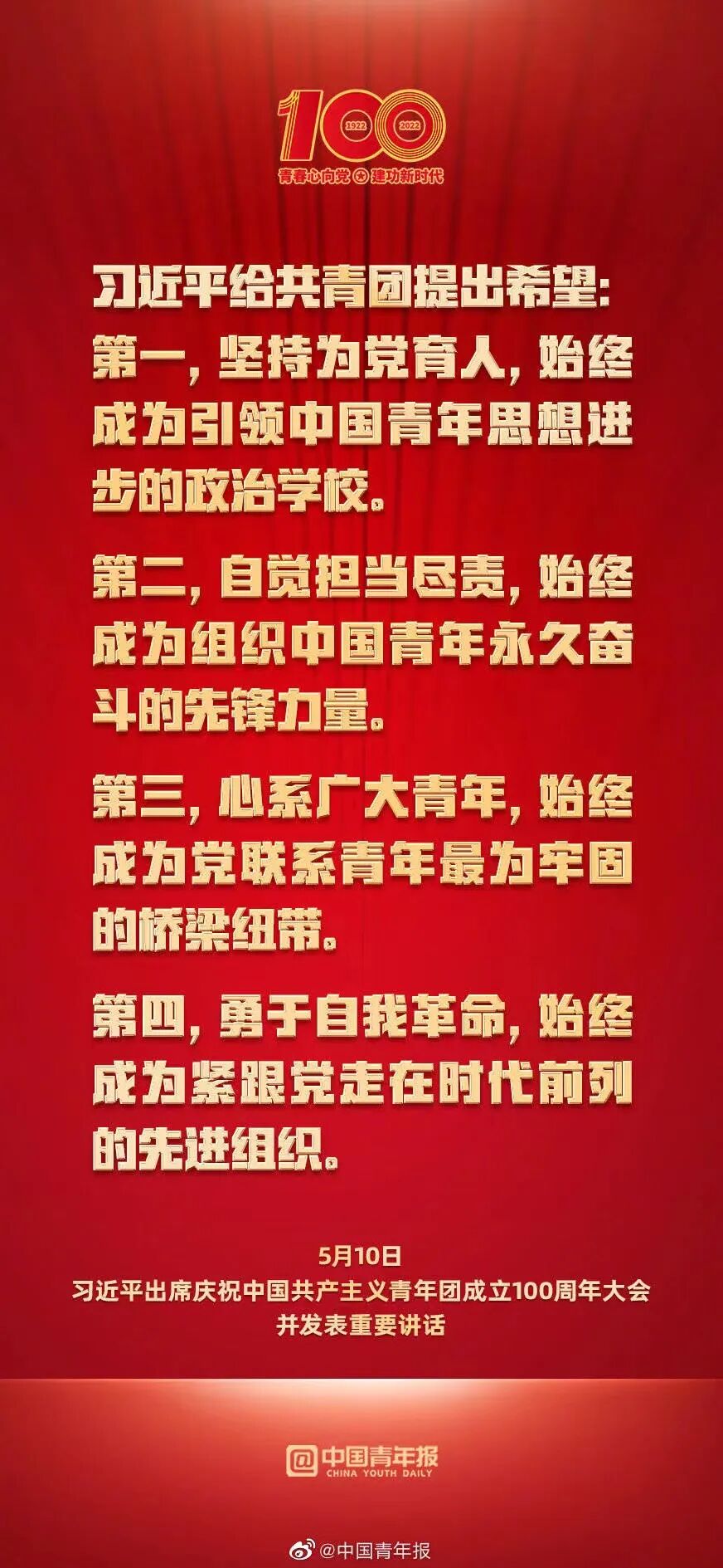 青年创造美好明天——学习贯彻习近平总书记在庆祝中国共产主义青年团成立 100 周年大会上重要讲话精神主题团日活动
