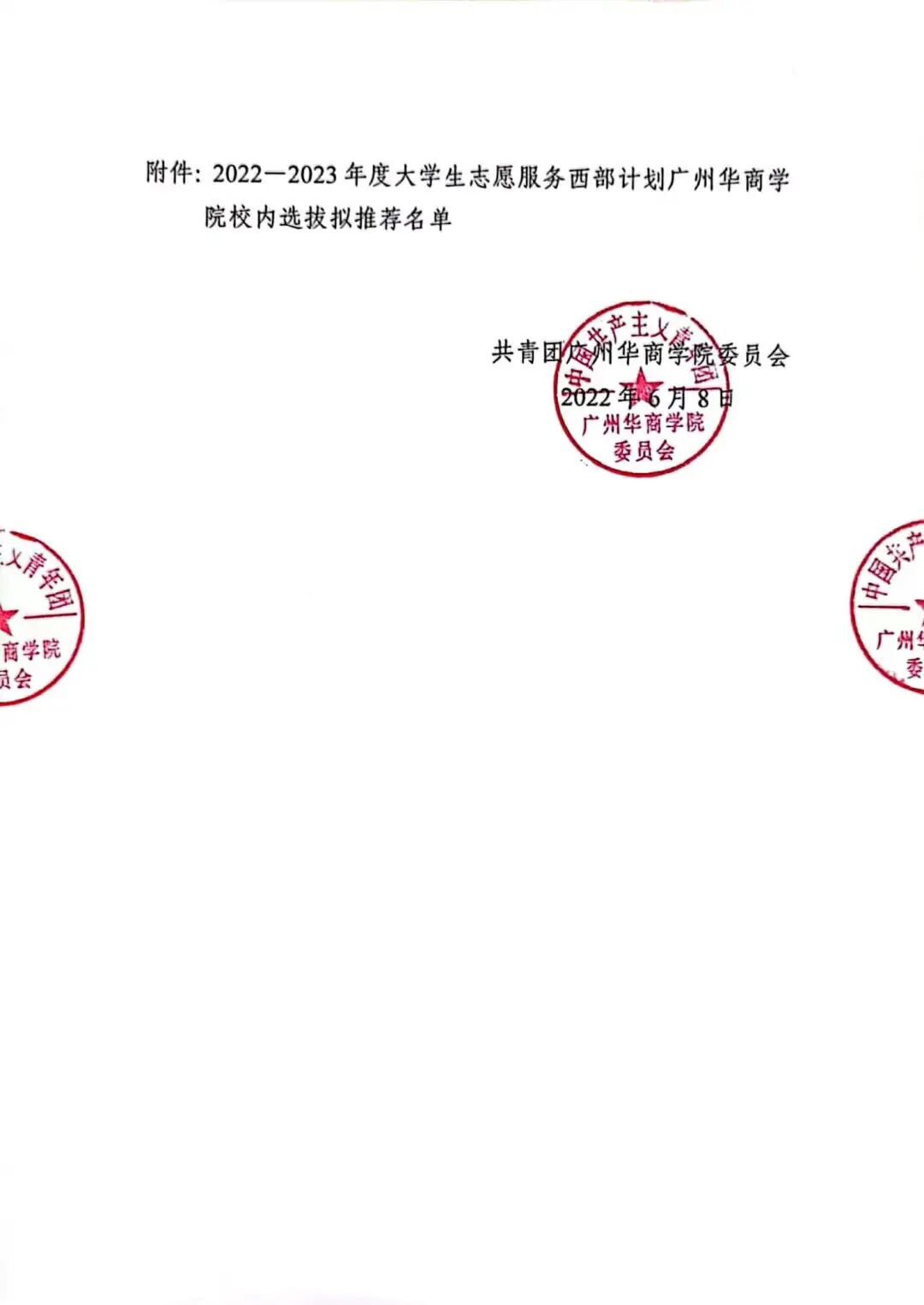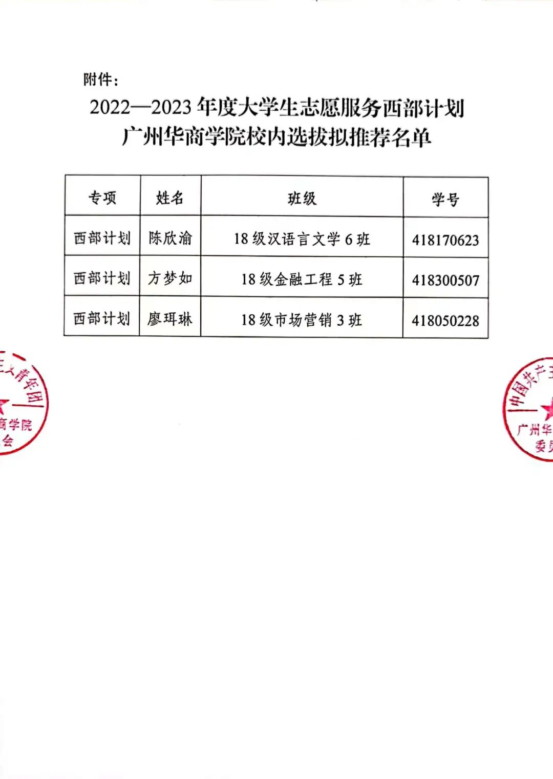 广州华商学院校内选拔拟推荐名单公示