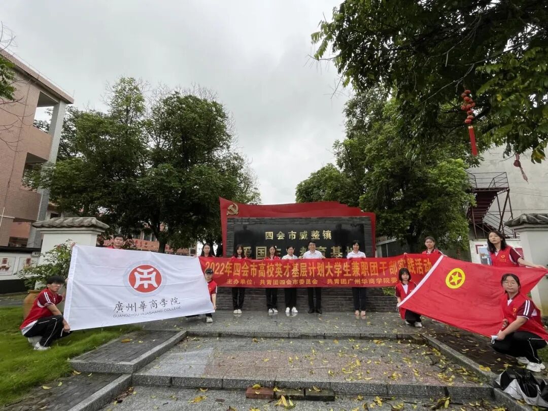 习近平总书记在庆祝中国共产主义青年团成立 100 周年大会上时寄语新时代的中国青年:“生逢其时、重任在肩,施展才干的舞台无比广阔,实现梦想的前景无比光明”。殷殷关怀、谆谆嘱托,激励青年在实现中华民族伟大复兴的赛道上奋勇前行。6月9日下午,华商校团委联合团四会市委实施2022年高校英才计划,分别在江谷镇和威整镇开展兼职基层团干部实践活动。本次实践活动由广州华商学院四会校区陈禄汉、赵颖祯两位老师带队。