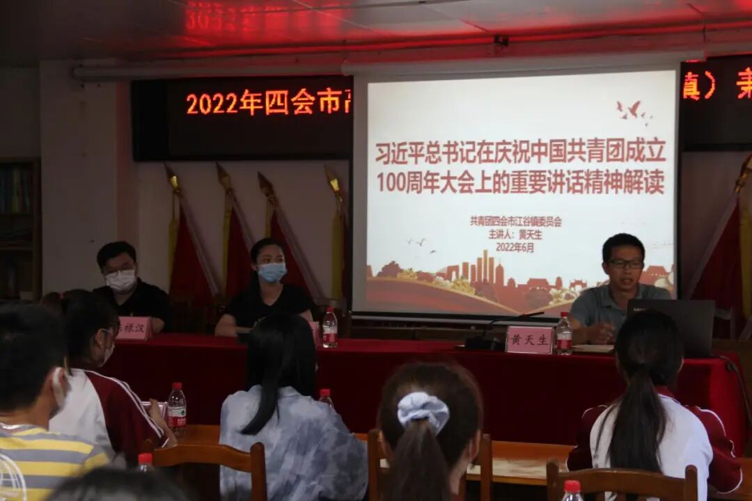 黄天生书记向与会人员详细介绍了江谷镇的发展情况,并带领全体兼职团干部深入学习习近平总书记在庆祝中国共产主义青年团成立100周年大会上的重要讲话精神。最后引用习总书记对青年的嘱托,希望各团干部扎实完成各项工作和学习任务,用实际行动践行“请党放心,强国有我”的青春誓言,为实现中华民族伟大复兴的中国梦贡献青春力量。