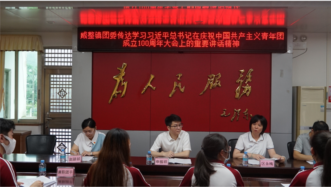 区永梅书记首先向与会人员详细介绍了威整镇的基本情况,并带领全体兼职团干部深入学习习近平总书记在庆祝中国共产主义青年团成立100周年大会上的重要讲话精神,并要求威整镇全体团干部要紧紧抓住喜迎党的二十大主题主线,不折不扣把习近平总书记重要讲话精神贯彻到事业发展全过程,带领威整镇团员青年忠诚拥护“两个确立”,坚决做到“两个维护”。