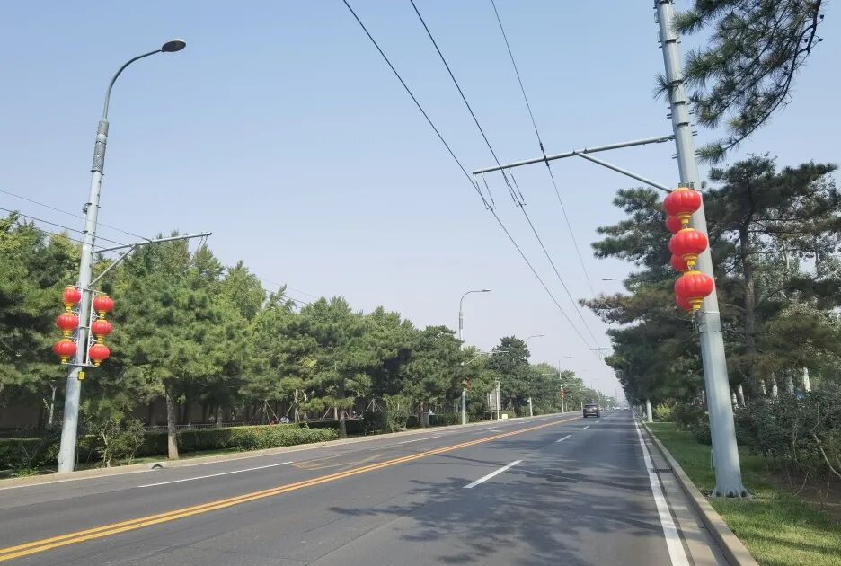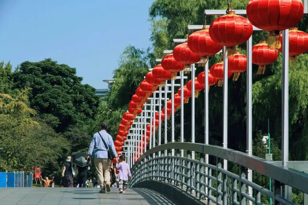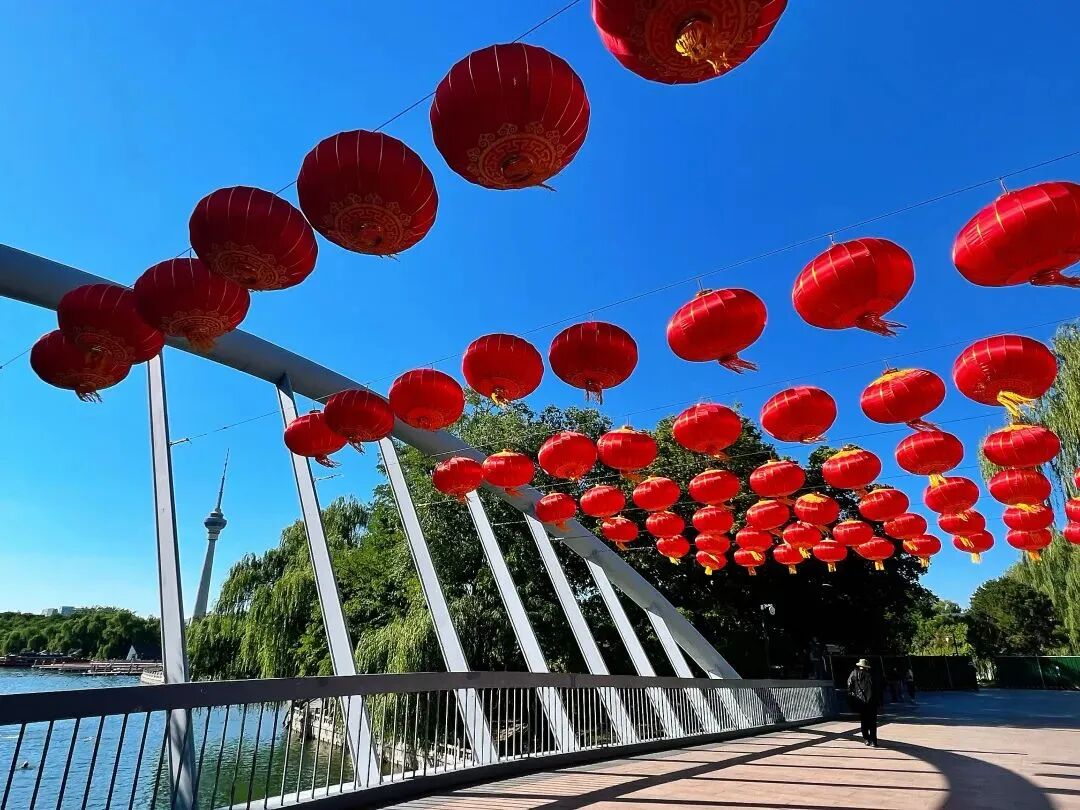玉渊潭公园内1500只(组)大红灯笼高高挂起