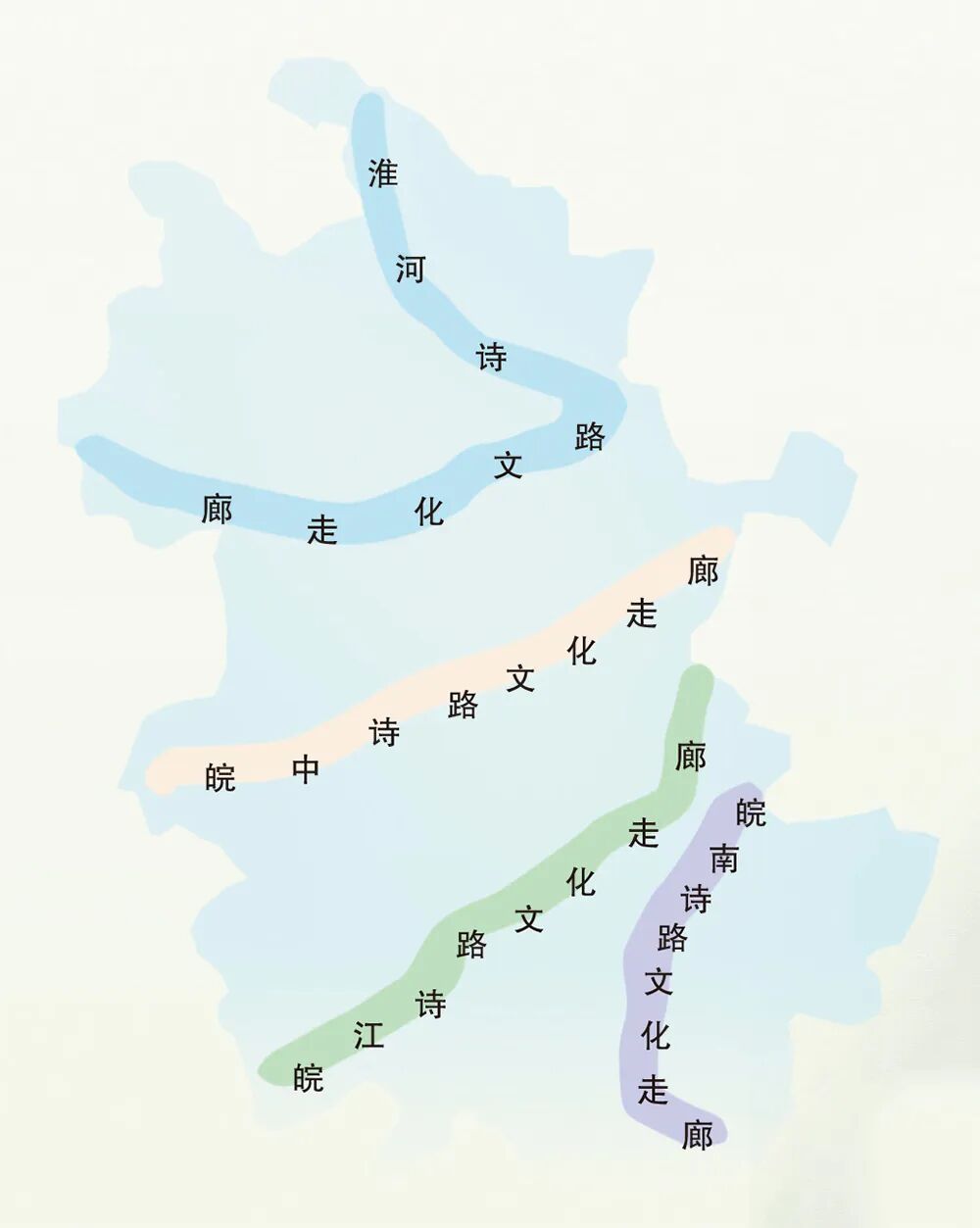 目前,安徽师范大学中国诗学研究中心团队在多年调研的基础之上,初步提出建议:规划建设“安徽诗路文化走廊”。以主要水系和陆路驿道为纽带贯穿全省,围绕水路交通图、诗人行迹图、皖学学脉图、名城古镇图、遗产风物图等“五幅地图”,“以诗(诗词曲赋)为媒”“以路(水陆古道)连廊”,重点规划开发“皖南山水诗路”“皖江诗路”“皖中诗路”“淮河诗路”四条文化走廊,在山水诗情画意间绘就现代版“徽风皖韵图”。