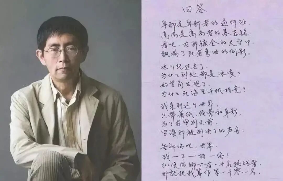 在一九七三年,年仅二十四岁的北岛,有感于时代的倒错,愤怒地写出了震惊中国文坛的《回答》——