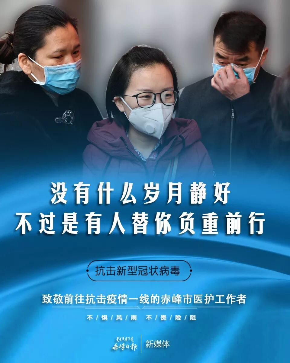 所谓岁月静好,只因他们逆风领跑,默默奉献,全心守护。哪怕负重前行,危险重重,他们毫不退缩,勇往直前。守护生命,保卫健康,他们用实际行动诠释着职责与担当。战胜疫情,护佑平安,是这些白衣天使最坚定的信仰,更是他们一往无前的最大动力。在本该一家人团圆围坐的幸福时刻,他们选择了义无反顾的奔赴战场,穿上防护服,他们是无惧无畏的英雄,脱下防护服,他们也是父亲,是儿子,是母亲,是女儿,是万千普通人中的一员。面对离别,有家人的不舍的叮咛和加油打气,他们不曾犹豫,信念坚定,因为这是为人民而战,为国家而战,他们走的,注定不是一条寻常路,他们不光是家人的希望,更是患者的希望, 这份烈土之上的敬意,应该赋予我们生命的守护者!是他们的果敢坚毅,换来我们的平安康健。面对疫情,冲到一线,是医者仁心,大爱无疆。终有一日,疫情会被击溃,而你们,是永远的逆行英雄!![]()