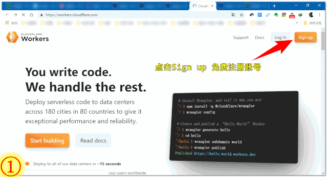 打开Cloud Flare :https://workers.cloudflare.com,点击Sign up进行注册