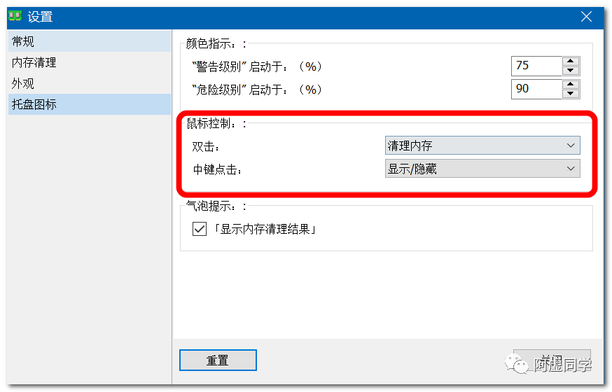 你也可以在软件中设置双击图标就直接清理内存