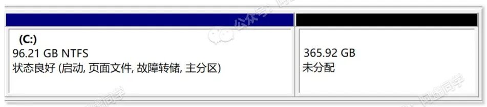 先举一个最简单的例子来说明给C盘增加空间所需要的前提: