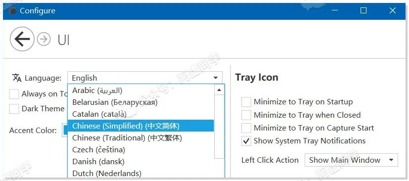 解压后双击captura.exe即可运行软件,默认为英文界面,你可以在软件设置 » UI » Language处修改为中文界面