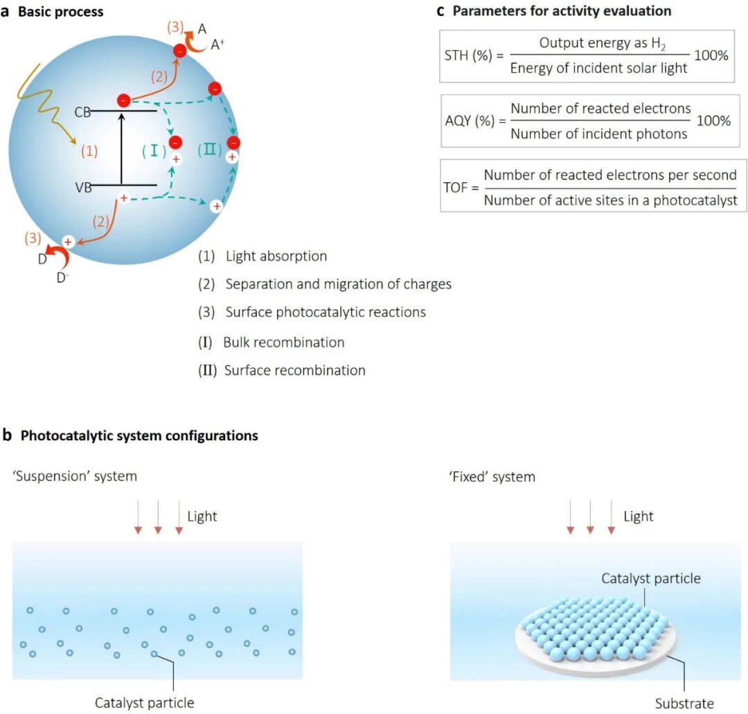 (2) 最佳的光催化剂需要同时保持太阳辐射光谱中的宽光吸收(需要窄带隙)和强氧化还原能力(需要宽带隙),但它们的实现本质上是矛盾的;