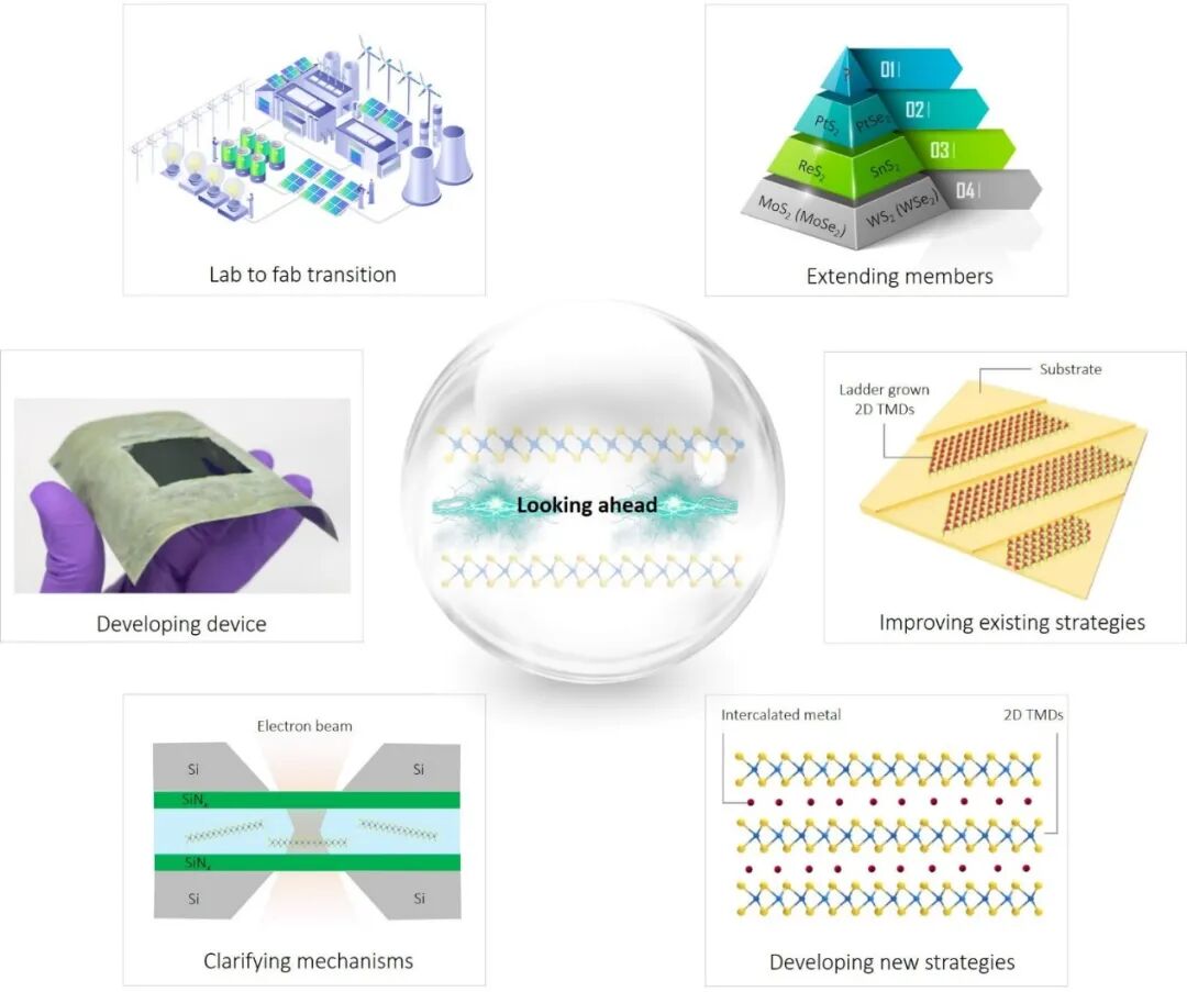 光催化技术的最终目标是为生产和生活服务。因此,实现2D TMDs基光催化剂的光催化应用从实验室到工厂的转变至关重要。然而,实现这一转变还有很长的路要走。未来实现这种转变需要依次完成的步骤包括:扩大已开发的设备,和/或串联或并联组装,然后将其置于兼容的工业系统中。在这些步骤中,不应忽视安全因素、经济因素和市场因素的评估。最近实现的太阳能制氢农场就是这样一个先驱,值得我们学习。