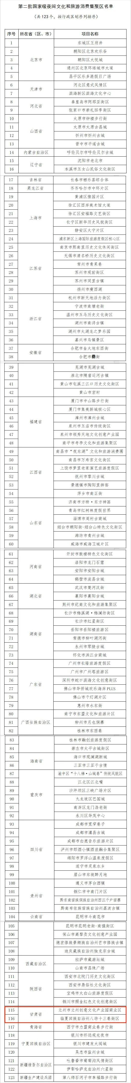 第二批国家级夜间文化和旅游消费集聚区名单,覆盖全国31个省、自治区、直辖市和新疆生产建设兵团,入选的国家级集聚区除了侧重文化和旅游特色,还具备鲜明的文化主题和地域特色,涵盖观光、餐饮、娱乐、休闲等多种业态,综合考虑了当地居民和外地游客的游览、休闲需求。