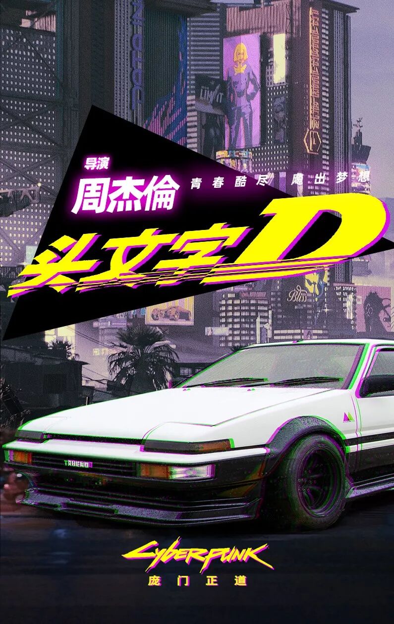 下面的案例我们将周董《头文字D》海报改造成赛博朋克风。