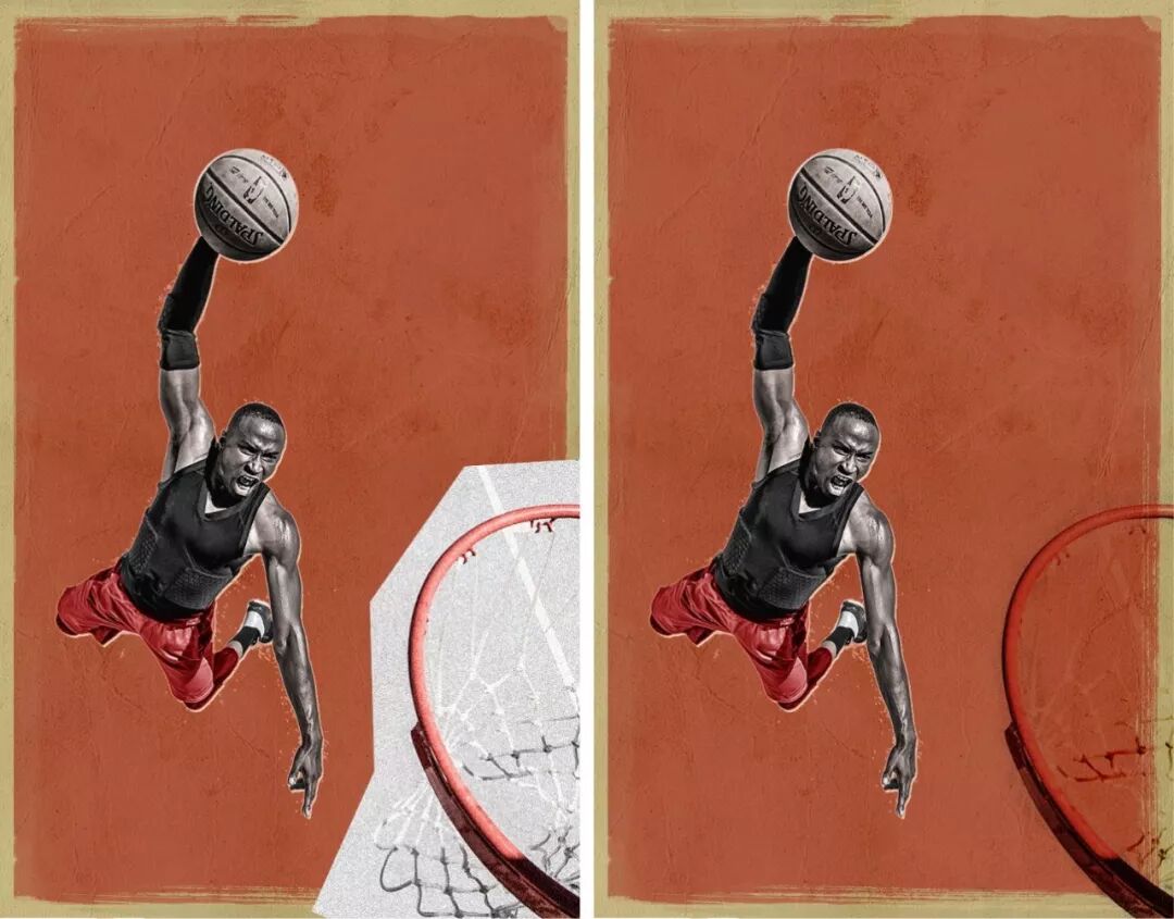 将篮框合成到画面中,新元素加入画面要注意透视角度的合理性。