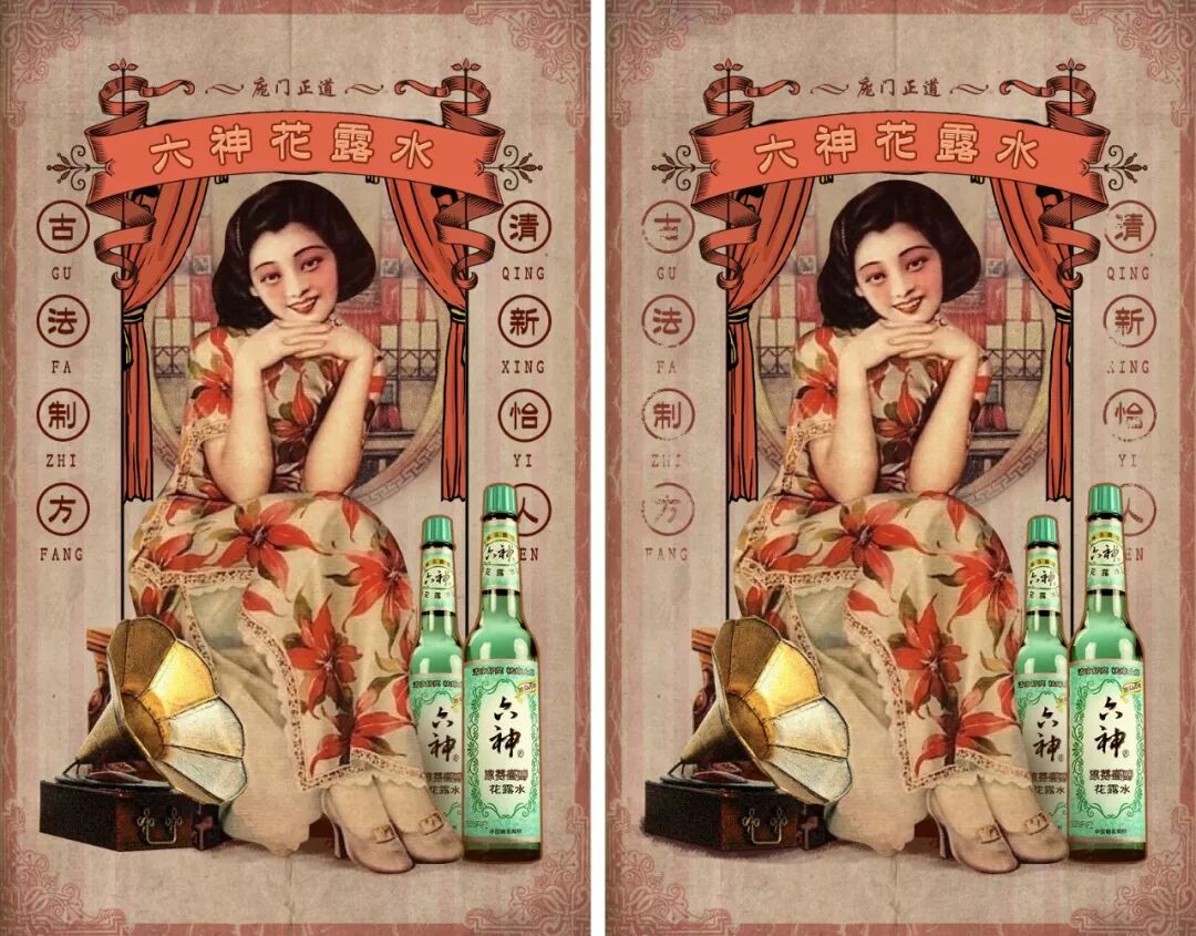 再按照构图的需要,拼贴一些线框和装饰元素上去。同时将商品六神花露水放上去。