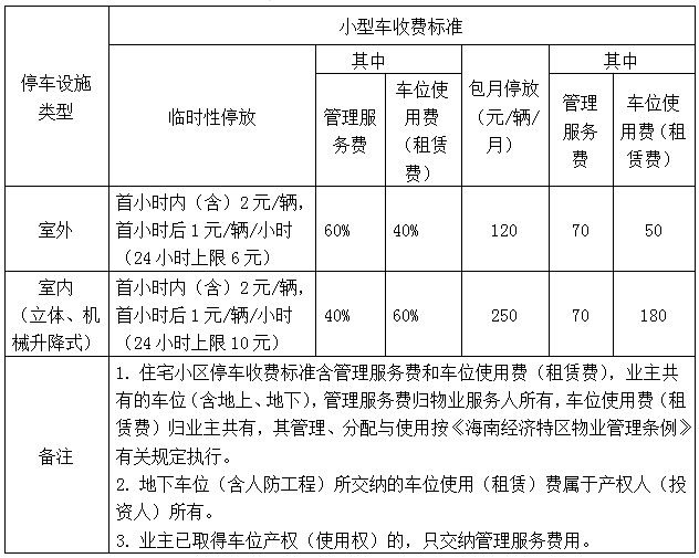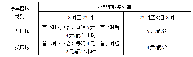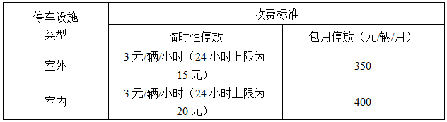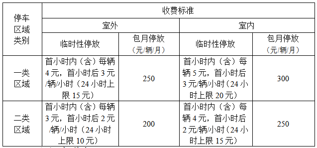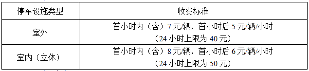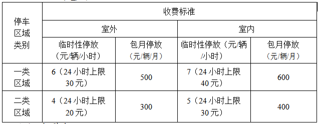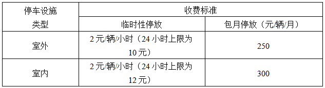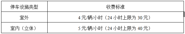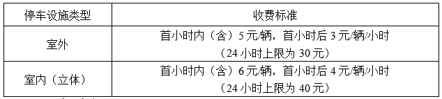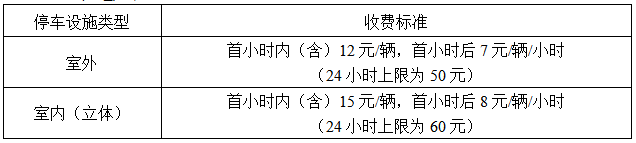 实行政府定价的各类停车设施的停车收费标准如下: