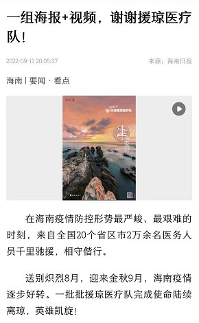 纷纷转发点赞援琼医疗队的