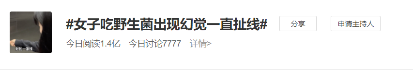 详情>>>《好笑又惊悚!昆明女子吃了野生菌后,一直对着空气扯“线”》