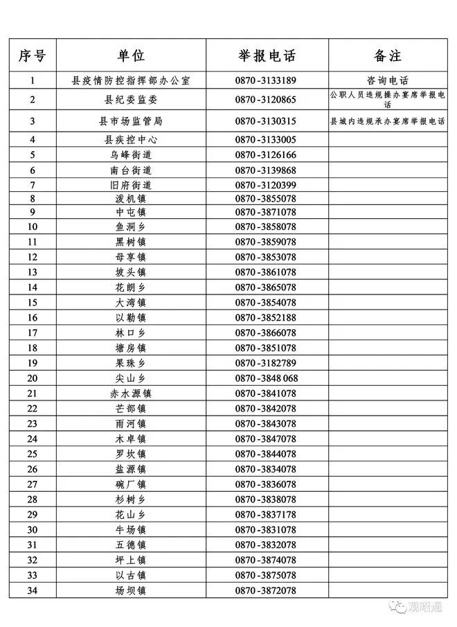 附件:镇雄县新冠肺炎疫情防控联系电话
