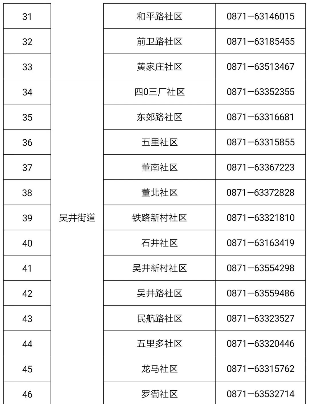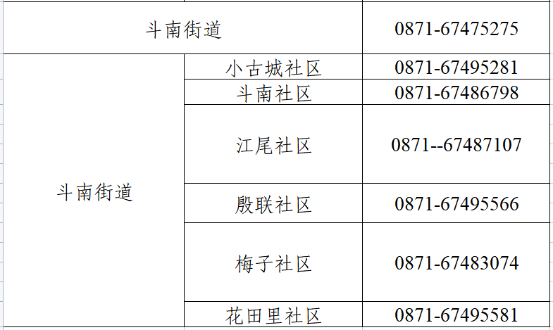 东华街道 | 田园路社区 | 0871-67163631 | 18082984867 | 08:00 -20:00 | |