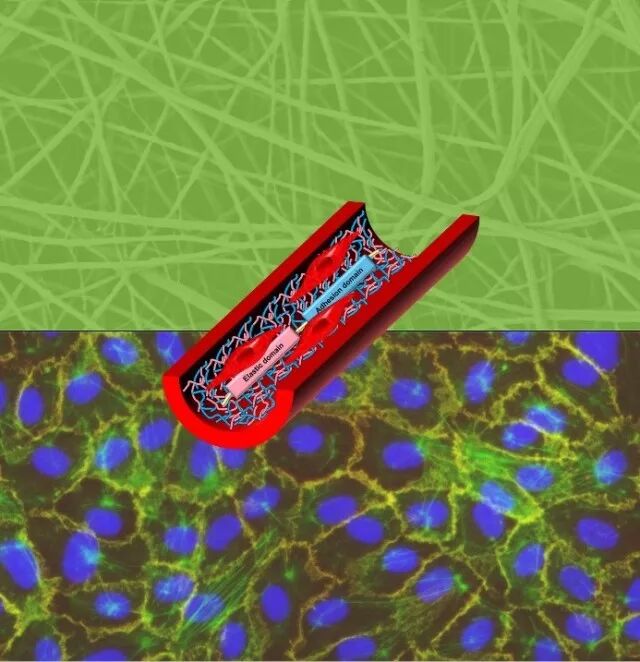 图1. 具有弹性片段和细胞黏附片段的纳米纤维复合支架对血管内皮细胞功能的调控