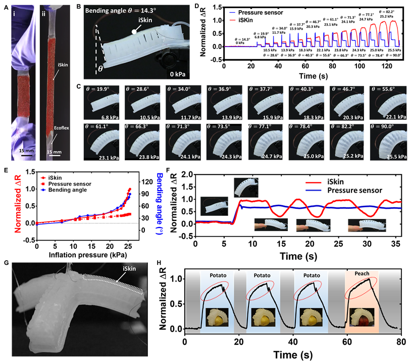 图4. iSkin用于四足软体爬行机器人的抗冻感知。